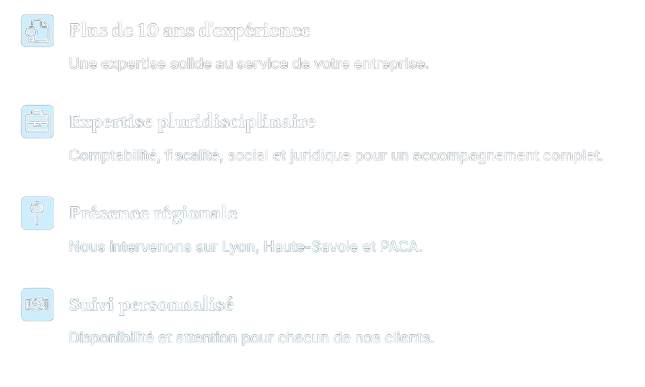 Grâce à une expertise complète en comptabilité, fiscalité, social et juridique, le cabinet propose un service global et sur mesure, au service de la performance et de la sérénité de ses clients.